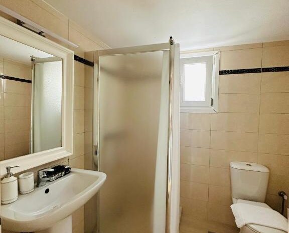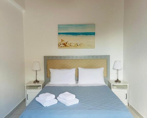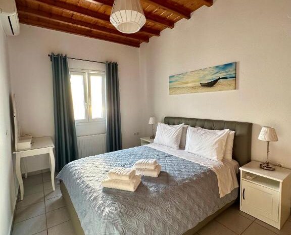 Two-Bedroom Apartment is 70sqm with 2 bedrooms, a veranda with sea view over the Aegean sea and the island of Delos.